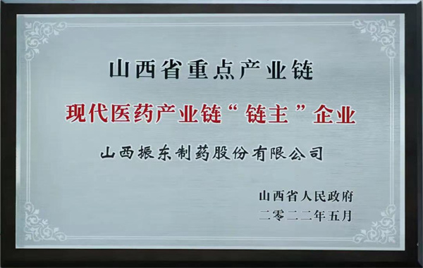 2022年5月振东集团作为全省“链主”企业被授牌