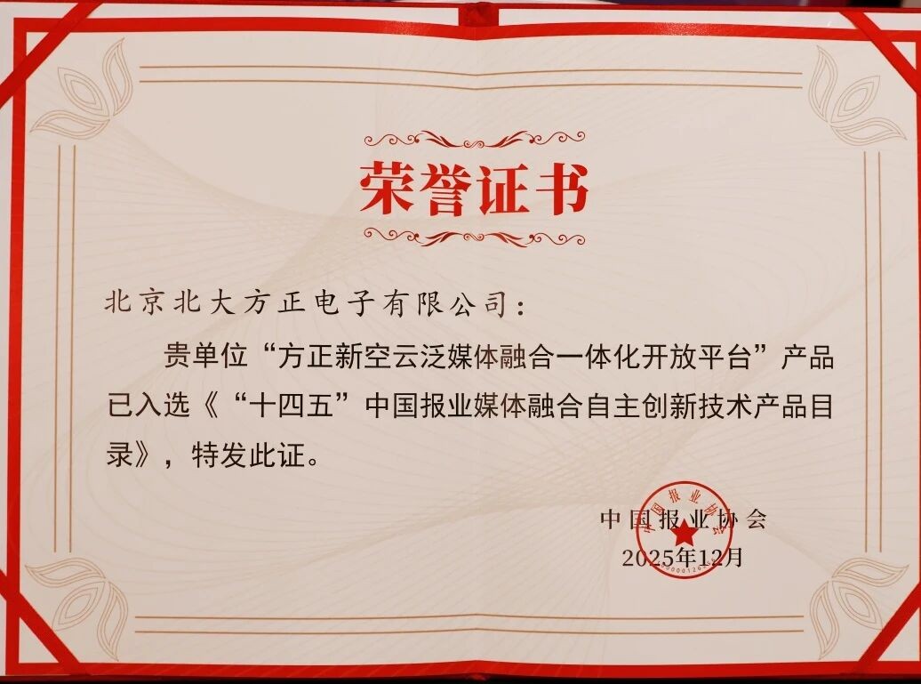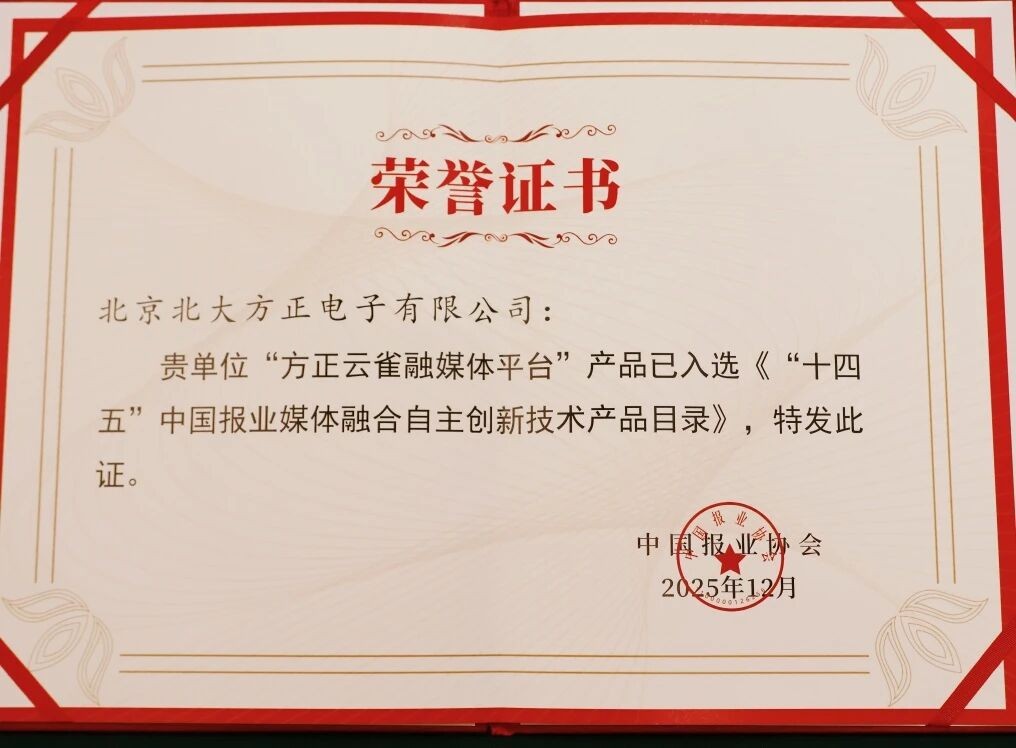 面对技术跃迁与行业系统性变革的新征程,方正电子未来将以《“十五五”中国报业媒体融合发展规划建议书》为指引,坚守自主创新之路,深耕媒体核心技术应用,开放共享技术资源,为媒体“生产、传播、运营、安全”全链条提供优质支撑,与媒体行业同仁携手书写高质量发展新篇章。